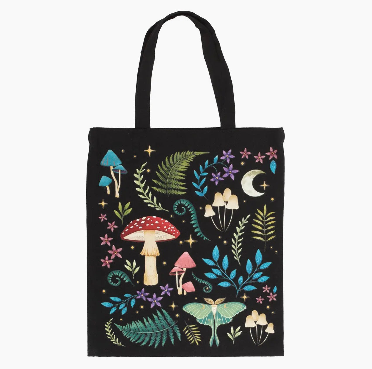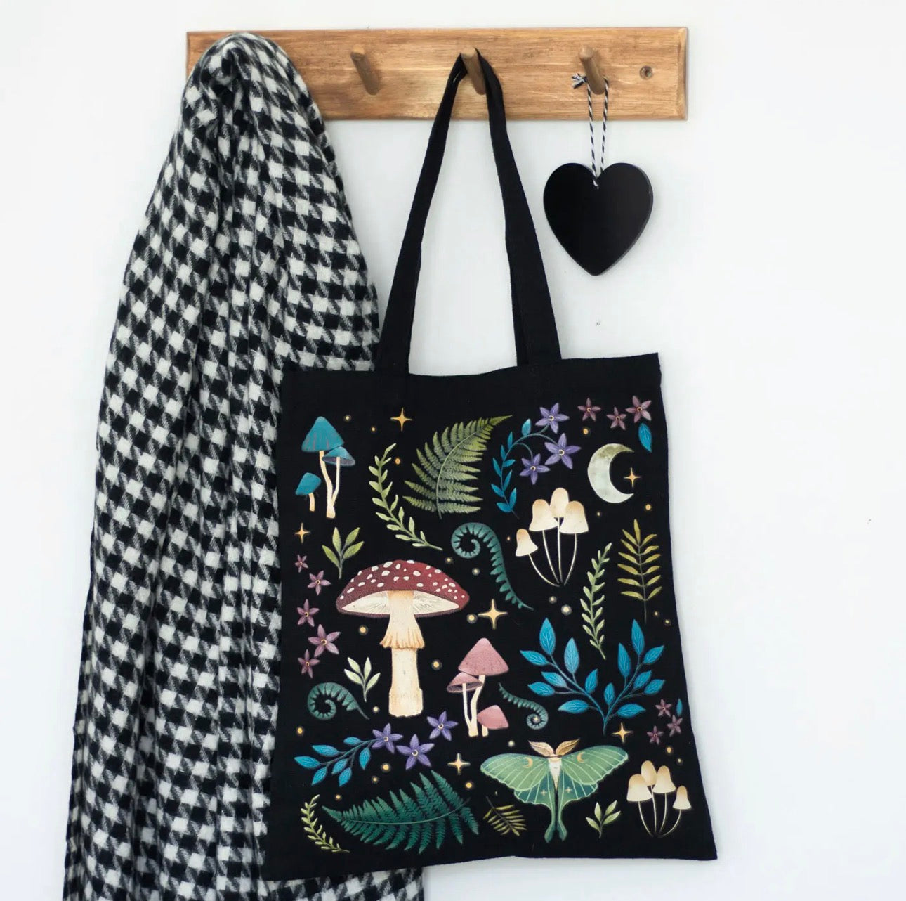 👜 Fantasy mushroom & botanical tote bag (durable fabric, full-size)