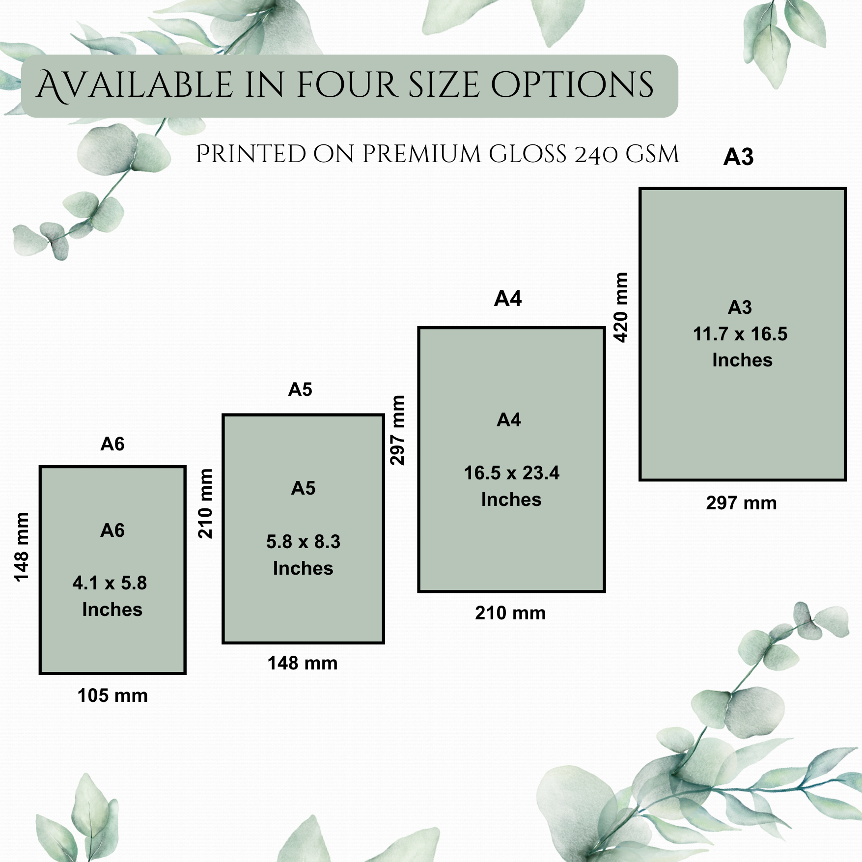 - Size Options: A6, A5, A4 & A3